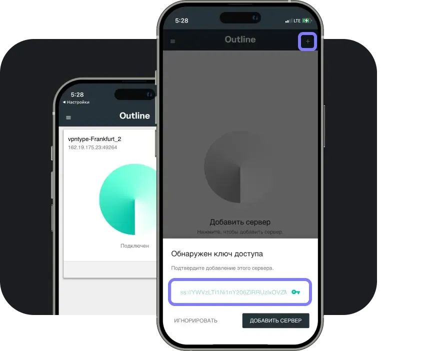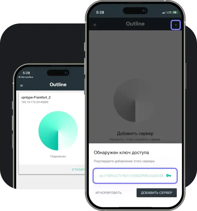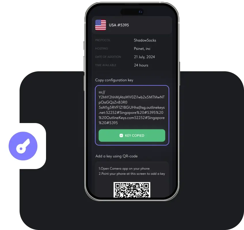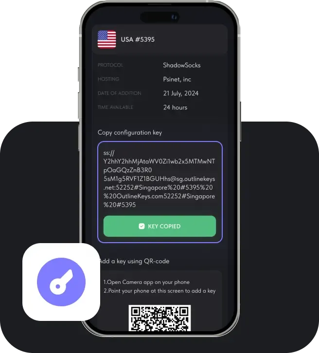 Download the Outline app to connect to VPN by adding the configuration key.